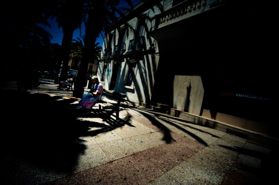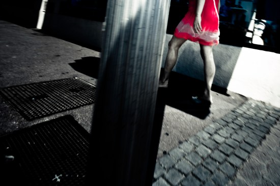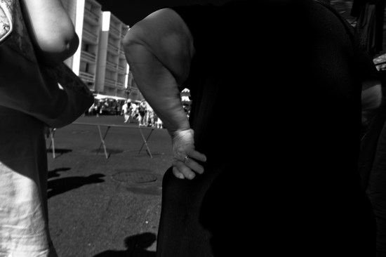 Aperçue du coin d’une rue cette femme assise à la terrasse d’un café. La lumière n’était pas violente et ce sont ses grandes lunettes de soleil qui ont attiré en premier lieu mon oeil… puis son port de tête, inclinée vers le bas, elle ne voulait pas regarder la rue passante. Je me suis assis à quelques mètres d’elles, à une table distante…silences coupés par le bruit des voitures.Elle est habillée de noir assez élégamment, absence de couleurs pour cette saison. Son corps puissant, moulé dans sa robe noire sans décolleté, est soulevé brutalement à quelques secondes d’intervalle, par de lourds spasmes respiratoires…. Elle pleure, seule, face à un verre d’alcool blanc….. une solitude.