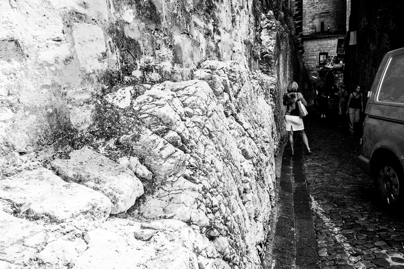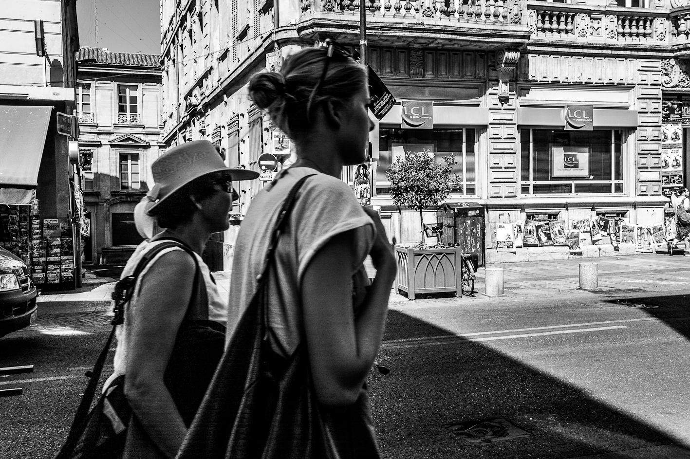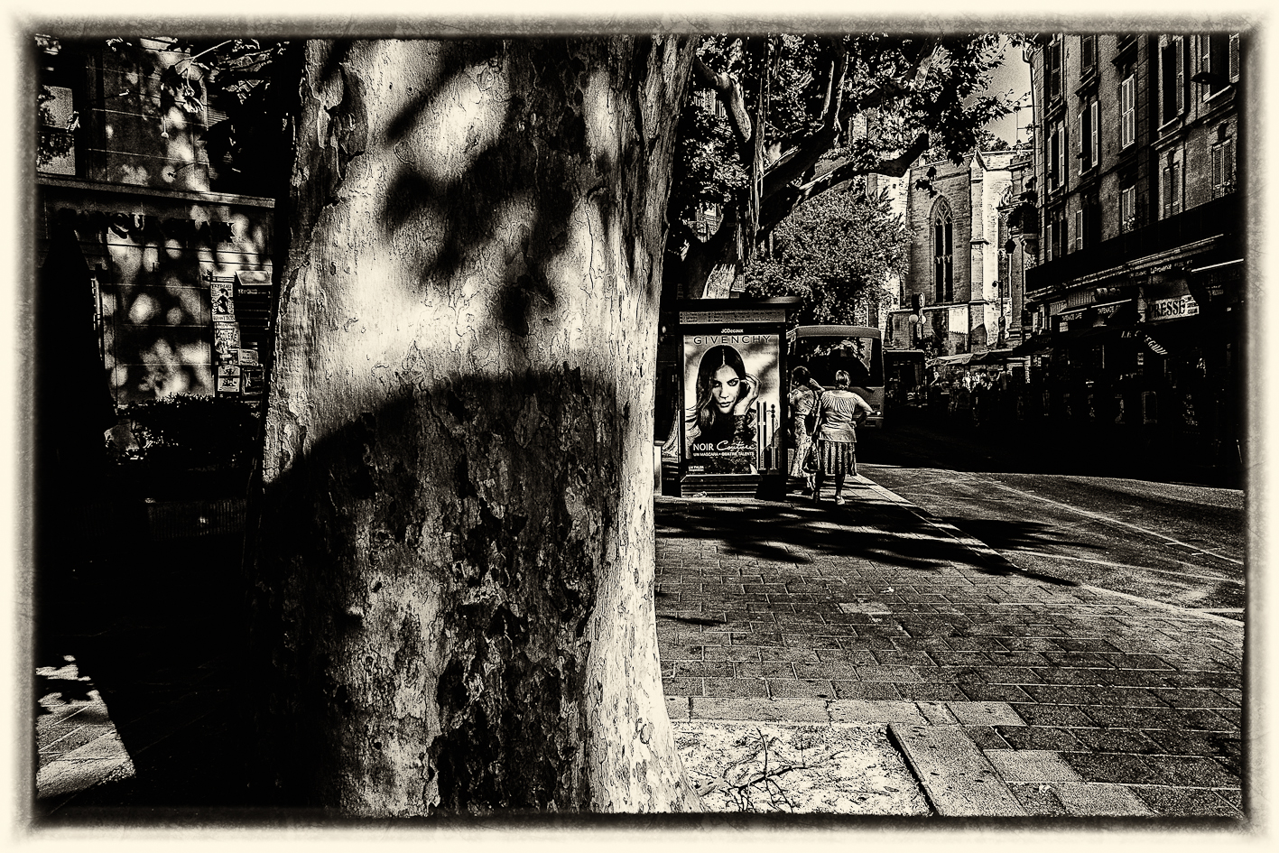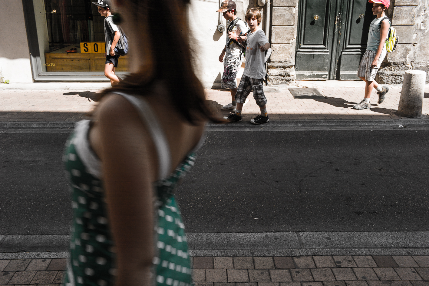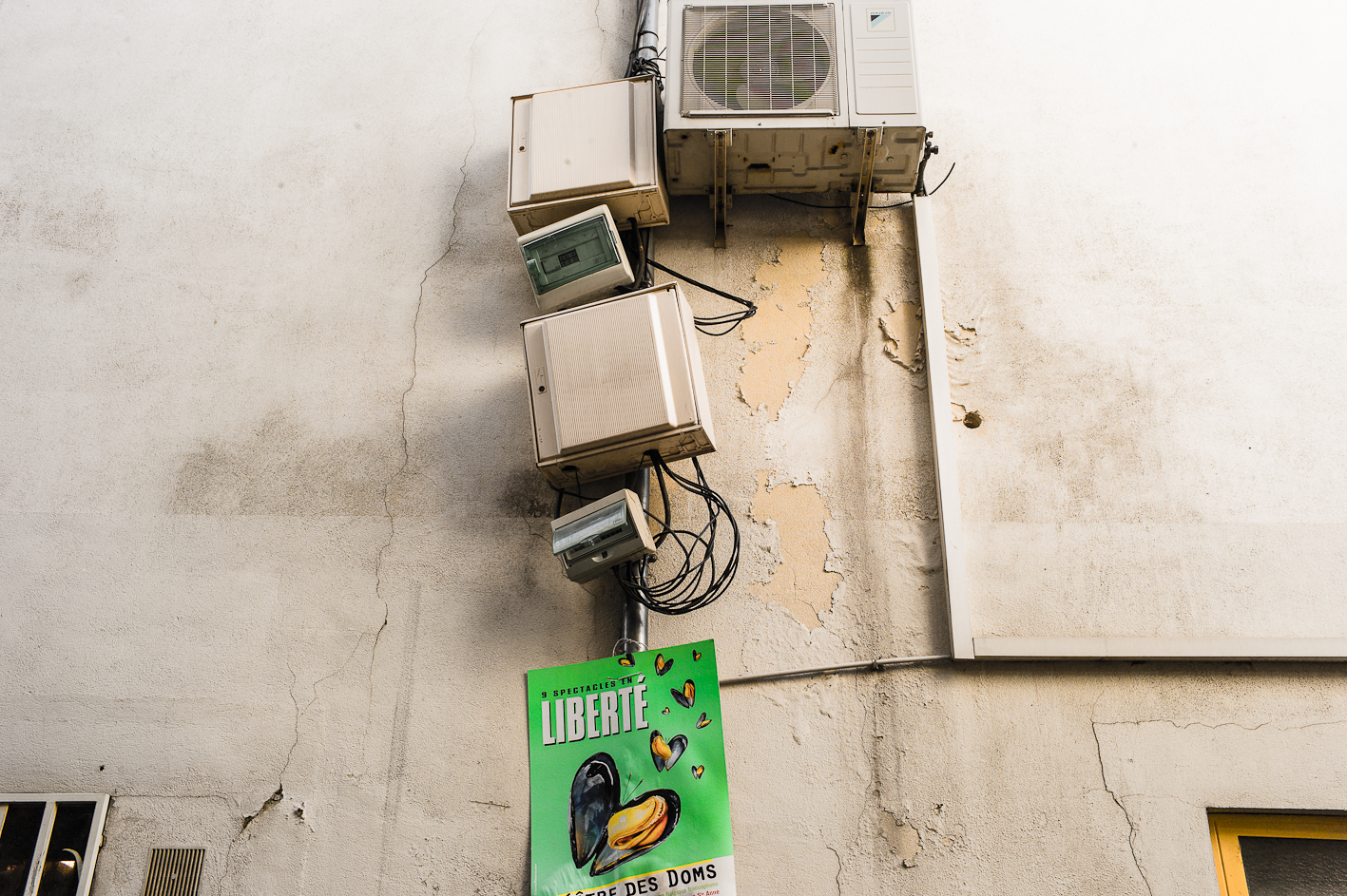 Avignon… gnongnon…Il y fait chaud et il y a un festival de theâtre. J’y suis depuis hier… à Avignon, pas vraiment au festival… Cependant, il faut reconnaître qu’il y a du spectacle vivant et du moins vivant… récapitulons donc une journée. Vers neuf heures, c’est la fin de la nuit pour certains, début d’une chaude journée pour d’autres, on croise des théâtreux sur le pied de guerre, des femmes courtes vêtues et transparées pour mon plus grand plaisir. Dix heures, les spectacles commencent, des touristes, pardon, des festivaliers font la queue devant des théâtres, certains petits d’autres petits… la cour d’honneur du palais des Papes c’est plutôt le soir. Dans la rue commence la distribution des flyers, c’est un peu comme les bons de réductions en bout de gondole dans votre supermarché, si ce n’est que les jeunes filles qui vous les distribuent sont courtes vêtues et transparées… pour mon plus grand plaisir. la chaleur monte, l’alongueur des robes aussi, je lis un des flyers, je ne comprends pas il est en japonais… Onze heures, tout bat son plein, il y a tellement de distributuons de flyers devant l’office du tourisme que je n’ai plus de place dans mon sac pour y placer le plan de la ville… certains flyers sont courts et transparés… pour mon plus grand plaisir. Midi, on déjeune, les femmes croisent les jambes en s’asseyant d’autres lisent leurs flyers, d’aucuns les ramassent à la pelle, vêtus d’un pantalon de travail vert et d’un gilet jaune fluo… pour leur plus grand ennui. treize heures, sieste en ce qui me concerne, mais j’ai l’intention de me rendre à un spectacle après… Vers quinze heures, je ressors, la foule est là sous la chaleur, elle tourne, elle roule, elle marche et le spectacle est dans la rue, les troupes défilent costumées, d’autres donnent des extraits de leur spectacle pour que l’on vienne les voir… Ça grouille, ça pue… je trouve refuge dans une église où je fais brûler un cierge à Saint Antoine de Padoue, dont j’apprends qu’il mourut d’épuisement… une jeune femme, dont j’entends la voix, travaille sur l’orgue un extrait que je crois être de Vierne, je n’en suis pas certain, mais je suis seul, dans la pénombre trente minutes durant, elle joue puissament, j’écoute fébrilement. Seize heures, à nouveau dans la rue, j’écoute des musiques, je regarde des présentations de spectacle, je recueille des flyers, je sens des odeurs de sueur, je photographie les vides laissés pas ce spectacle des autres… les femmes sentent toujours bon. Arrive la nuit qui marque le début de rien de plus que l’absence de lumière, l’orchestre Bulgaro-Roumain joue toujours aussi fort, ma voisine a de jolies cuisses qu’elle dévoile sans pudeur, il est vrai que ce petit courant d’air fait du bien à l’entrejambe… quelques heures de sommeil et j’assiste à mon premier spectacle, sept heures du matin, jmenbatslescouilles et tumfaispleurer, en direct de dessous ma fenêtre jouent une pièce dont je ne connais pas l’auteur mais dont le titre est « descente… caïne », je leur lancerais bien mon kilo de flyer sur la gueule pour marquer mon enthousiasme… mais ils quittent la scène chacun de leur côté… Donc dans culture, il y a ture et… pour mon plus grand plaisir… Ah oui chercher un con aujourd’hui… je caresserais bien la visage de la femme que j’aime…