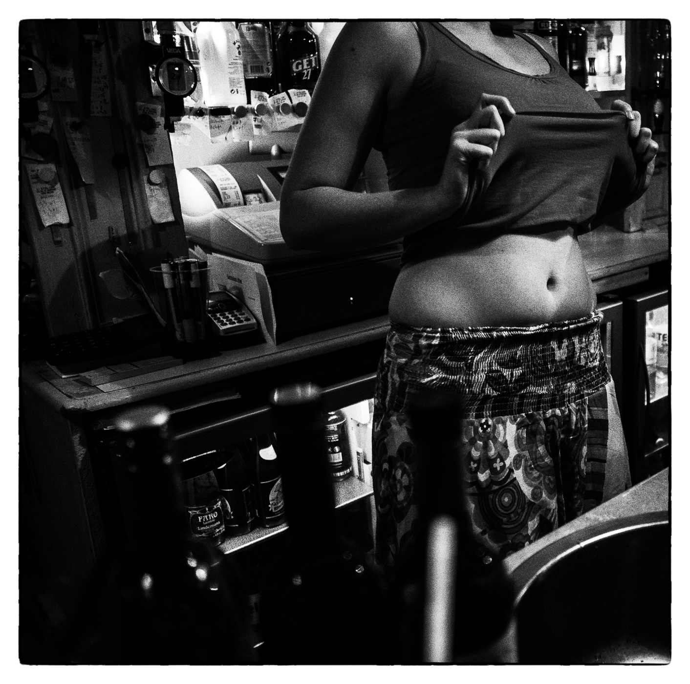 Je pourrais vous parler du plaisir à observer certains suintements entre les seins des femmes dont les décolletés sont glorieux, profonds et présents…mais je l’ai déjà fait. Je pourrais vous décrire combien il est est envoûtant de voir ces croupes onduler sous ces jupes satinées alors que le vent plaque sur leur chair parfois ferme ,parfois flasque, le tissu léger et court… mais je l’ai déjà fait. Je me contenterai de rester fidèle à mon sujet, le con… lourd, pesant, glorieux, ignorant de l’être, précis cependant dans sa tâche à faire remarquer qu’il en est un. Le con ne saute pas aux yeux comme une étiquette de soldes à moins 75%, non, il se rencontre. J’étais parti dans un bar du centre de ma ville pour faire l’achat au rayon presse, du Monde, journal qu’il m’arrive de lire durant mes vacances saisonnières. Je le cherchais donc, lorsque je fus interpelé par des voix dont les corps correspondants étaient accoudés au comptoir de ce bar. Il était 18 heures, l’apéro avait du commencé quelques heures auparavant, cela se voyait à la couleur carminée, pourprée que l’épiderme du plus bavard d’entre eux avait pris au contact de la douzaine de pastis qu’il avait ingurgitée. Ils parlaient de géopolitique, d’Histoire, du monde et des environs… Mon rougeaud réagissait à l’insistance de l’un de ses condisciples à évoquer le mot Mozambique. Il prétendait que les Encas avait été les fondateurs dudit Mozambique… ils ne s’engueulaient pas, non, ils discouraient aimablement… Les Encas du Mozambique, tout le monde le sait bien… C’est beau une ville à l’apéro…
