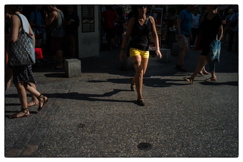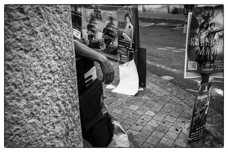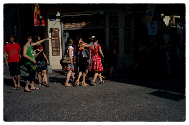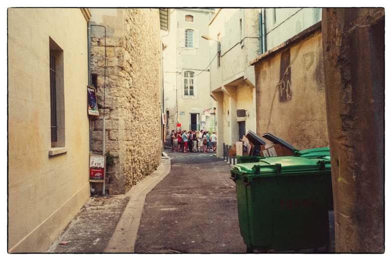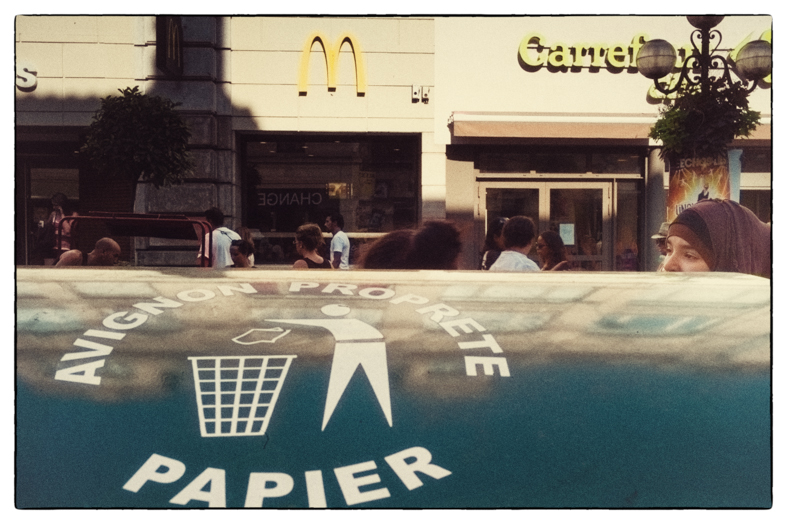 Arles… festival de la photo… pas trop de monde, pas trop de con…. Si ! cette parisienne, je pense, qui commentait à voix haute chacune des photos qu’elle voyait… et puis ce matin, dans le parc où je suis, une bande de post adolescents qui participent à un stage de théâtre, ce n’est pas tant le stage qui me pousse à … c’est leur facilité à rire en même temps de la même chose… un groupe soudé, ils se tiennent la main et fond des exercices de cohésion sociale… c’est bien… encore… on en a besoin. Il y a bien eu aussi le présentateur du tour de France qui disait aussi d’un coureur colombien qu’il avait eu une maladie qui ne s’attrape que là-bas… et aussi ce Japonais qui, sur 50 mètres a photographié une vingtaine de fois sa femme, en face de chaque porte, même celle de la banque… comment on dit con en Japonais.Tout va bien… je veille….
